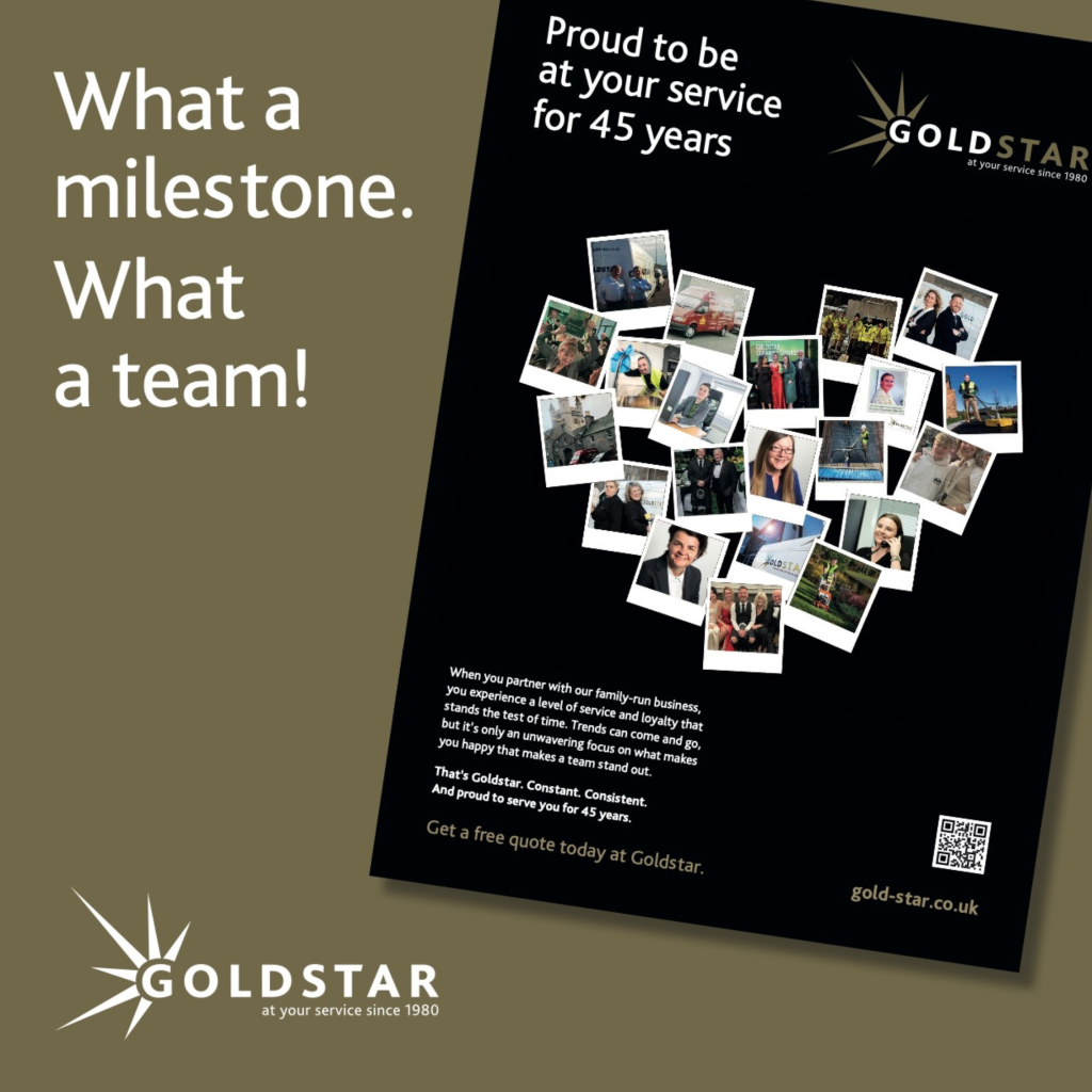 We’re proud to be celebrating 45 years of Goldstar. As a family-run business based in Aberdeen, we’ve grown by staying focused on what matters most – our clients, our people, and consistently delivering a quality service.